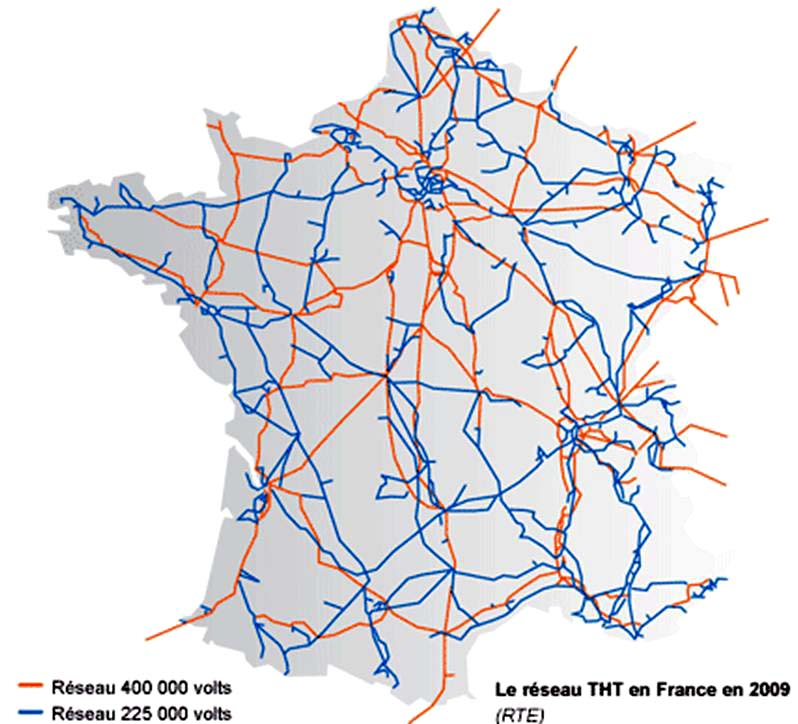 Le transport de l'électricité se fait au moyen d'un réseau très haute tension (THT). Ainsi, on limite les pertes dû à l'échauffement des conducteurs dans les lignes vu les grandes distances à parcourir.