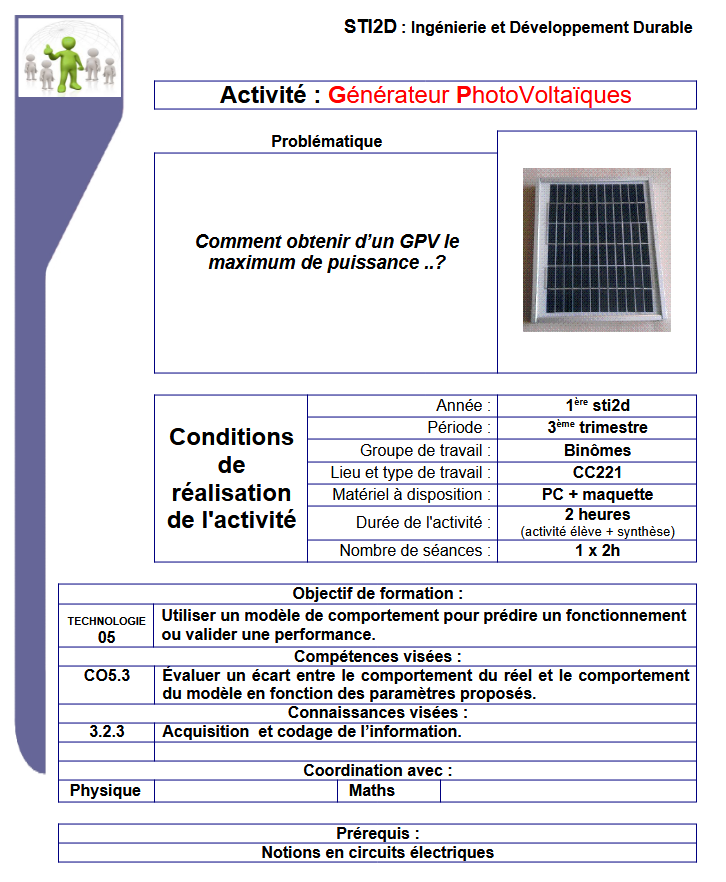 * De relever la caractéristique I = f(U) d'un GPV pour différents niveaux d'éclairement.