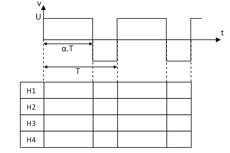 Déterminez le séquencement des hacheurs H1 à H4 pour obtenir l'allure de v :