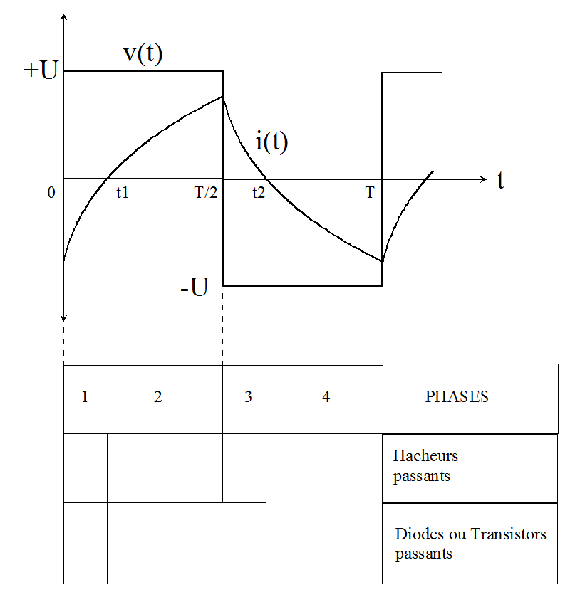 Déterminez le séquencement des hacheurs H1 à H4 et des diodes ou transistors
