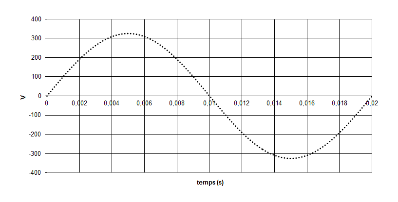 L'allure de la tension u(t) du réseau est donnée : 230 v 50 Hz