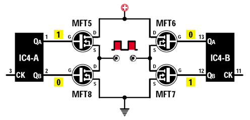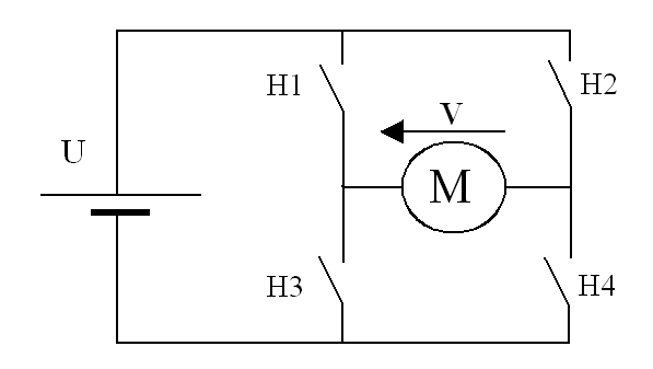 Le schéma est identique à celui du hacheur 4Q mais la commande des interrupteurs H1 à H4