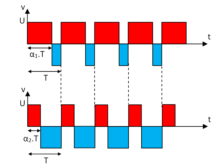 ( Le rapport cyclique α = 0,5 donc la valeur moyenne est nulle ).