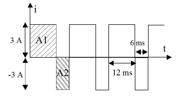 Le courant i de cet exemple a donc les mêmes propriétés qu’un courant continu de 1 A :