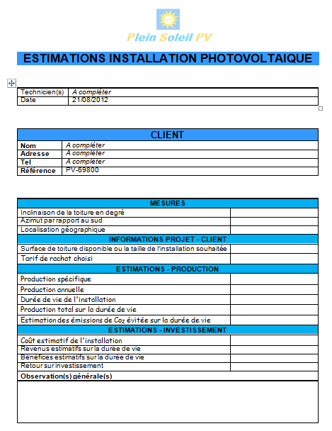 Vous avez rendez-vous chez Mme et M. Stid afin de réaliser le dimensionnement de sa future installation photovoltaïque. Cette installation sera raccordée au réseau public. L'électricité produite sera intégralement revendue à EDF afin qu'ils puissent bénéficier des différentes aides pour le financement de leur installation.