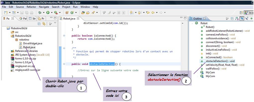 Problématique : désormais Robotino peut être commandé dans toutes les directions et avec la possibilité d'augmenter sa vitesse en marche avant pour une plus grande souplesse d'utilisation. Toutefois il faut prendre en compte le fait que Robotino puisse rencontrer un obstacle avec une vitesse qui peut être importante.