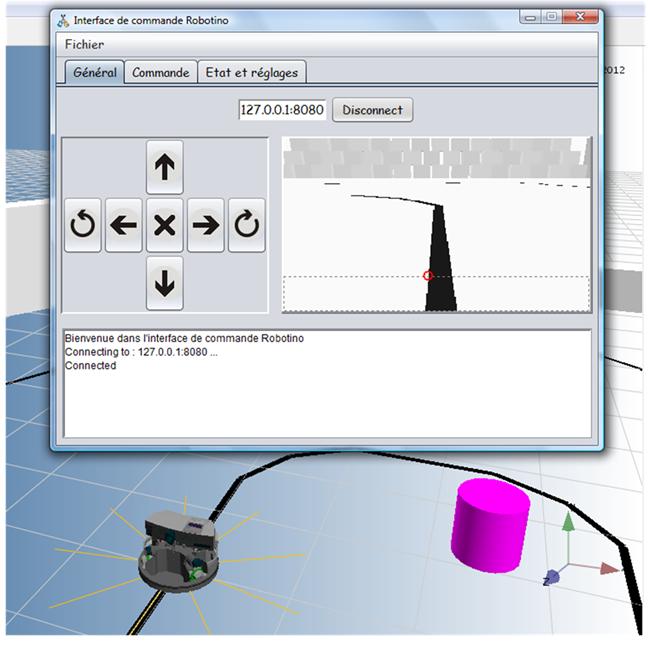 Lancer Robotino® Sim Demo (raccourci sur votre bureau). Cliquez alors sur le bouton Connect de l'interface, l'image de la caméra de Robotino apparaît :