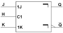 Pour cette bascule aussi, il faut considérer l'état de J et K (à t-) avant le front actif (↓H) pour déterminer l'état de la sortie Q (à t+) juste après le front descendant de H.