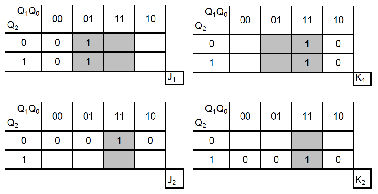 J0 = K0 = 1 J1 = K1 = Q0 J2 = K2 = Q0 . Q1