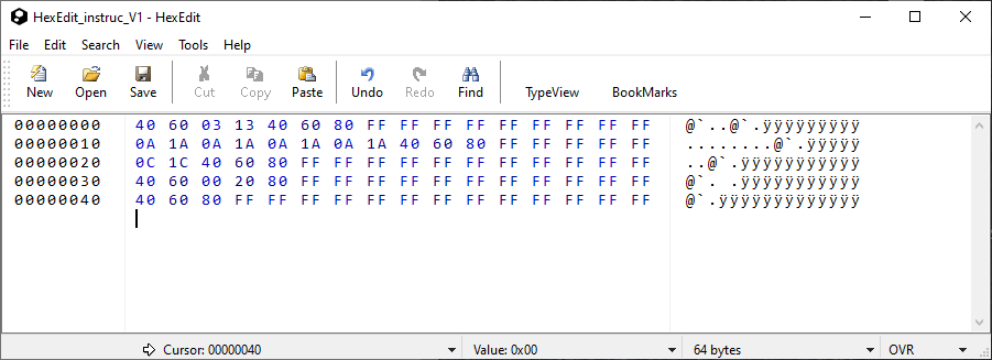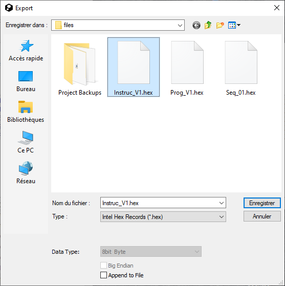 Création du fichier Instruc_V1.hex. (Type:Intel Hex Records)