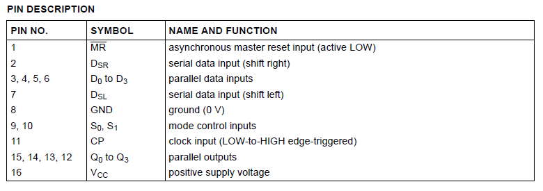 Pour notre processeur nous utiliserons des Registres à décalages 4bits de type 74LS194.