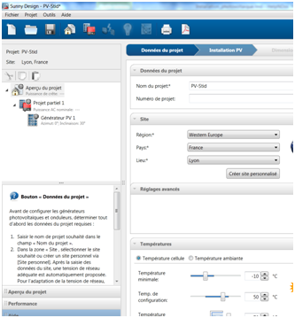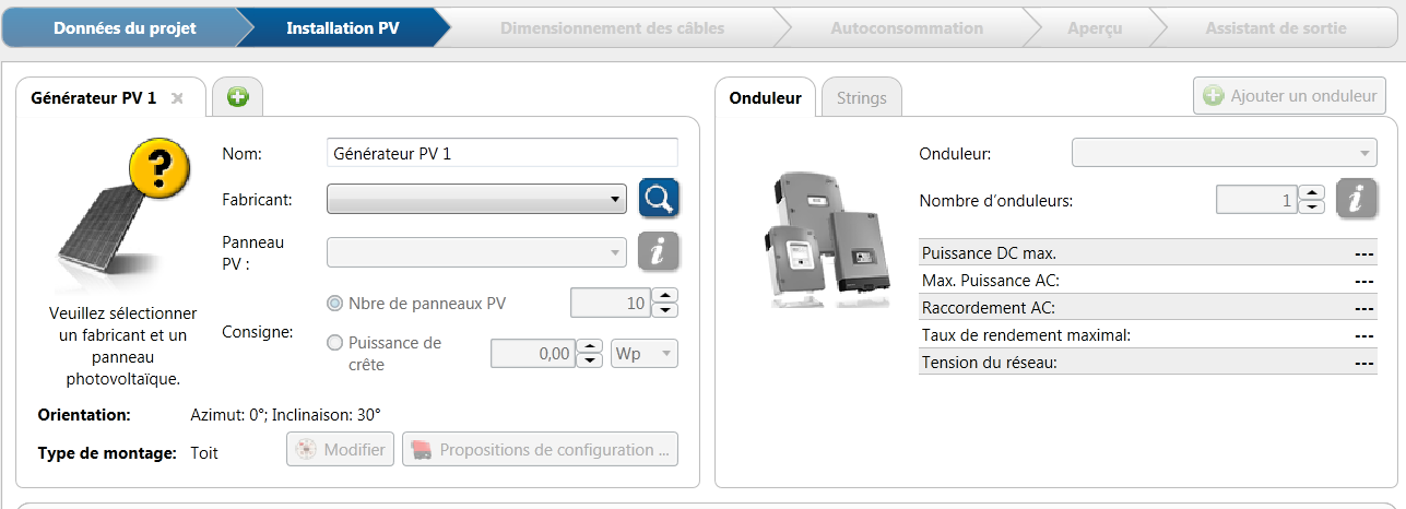 Compléter les "Données du projet" Suivre les indications du champ Sélectionner l'onglet "Installation PV" |