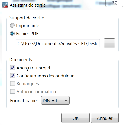 Sélectionner l'onglet "Autoconsommation" lire les indications du champ Sélectionner l'onglet "Assistant de sortie" lire les indications du champ Afin de générer un rapport technique pour présentation au client, l'éditer au format PDF et l'enregistrer dans votre dossier personnel. |