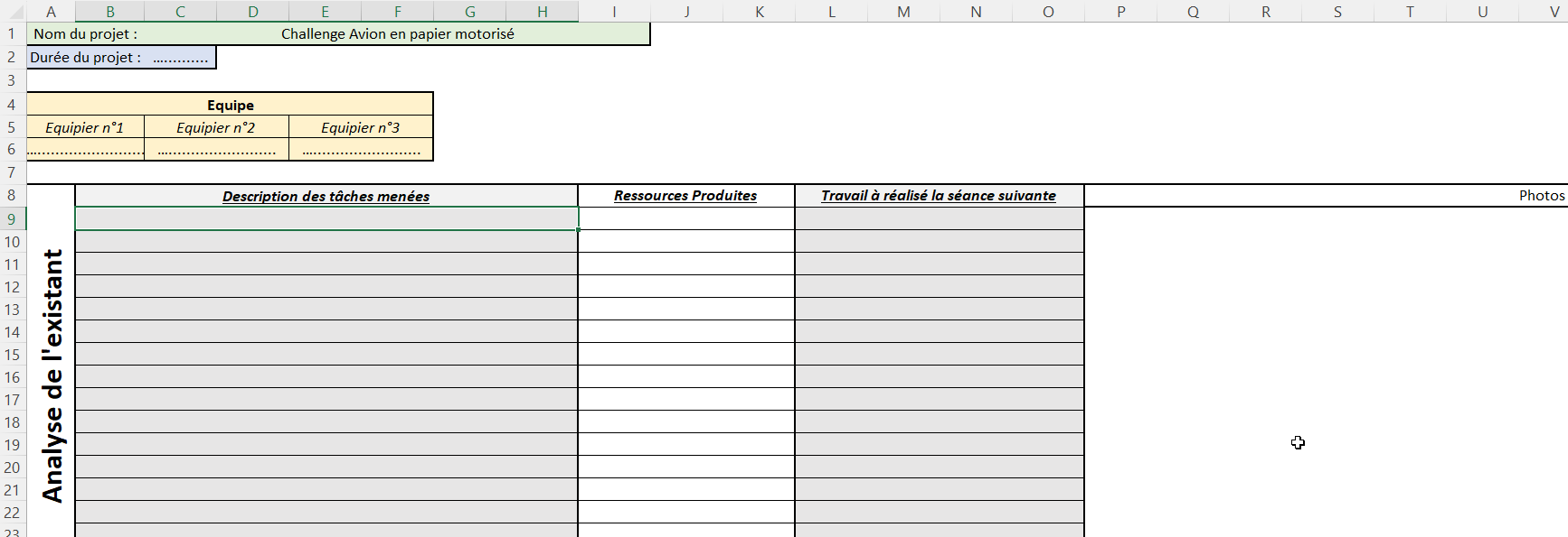 Une fois la planification terminé, ouvrez la fiche Excel de suivi de projet. Dans les 4 onglets de revue de projet complétez la date prévisionnelle. Dans l'onglet Suivi de projet, indiquez la durée du projet.