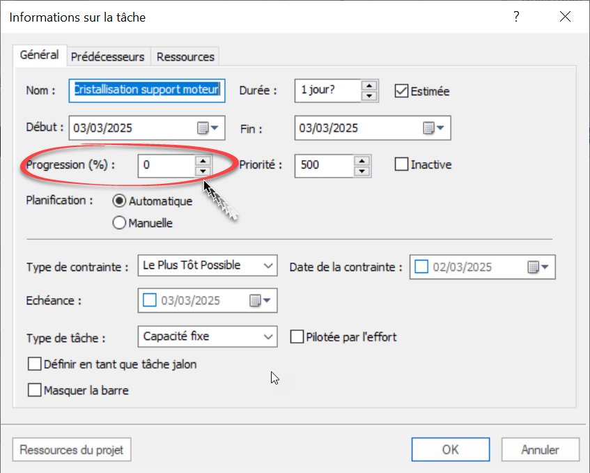 Tout au long du projet vous renseignerez l'évolution de la réalisation de chacune des tâches