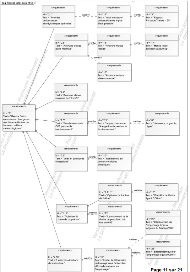 Le diagramme des exigences du projet Solar Impulse est donné ci-dessous :