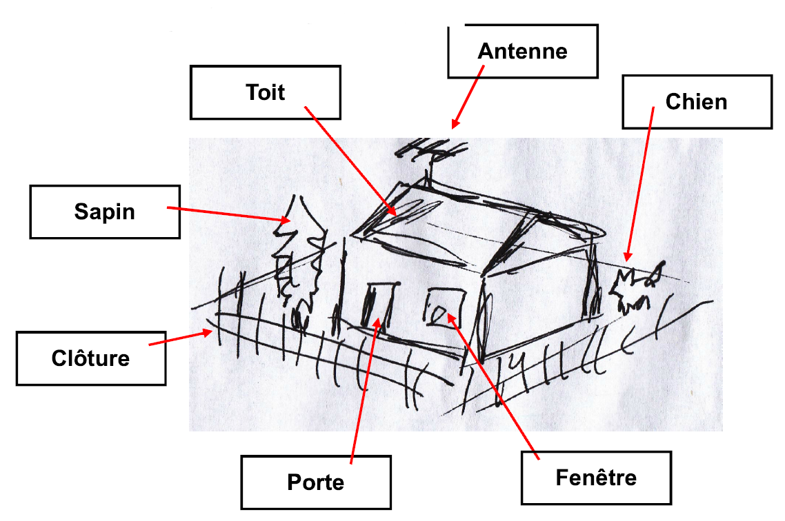 - Chacun des éléments à concevoir doit pouvoir se "clipser", soit sur la maison elle même (Antenne, Porte, Fenêtre et Toit), soit sur une plaque support (Chien, Clôture, Sapin)