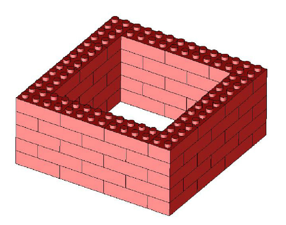 - L'encombrement de la maison doit respecter le volume des autres coffrets thématiques. Les dimensions extérieures au sol de la maison seront de 224 x 224 et la hauteur de la façade fixée à 95 mm (5 briques empilées)