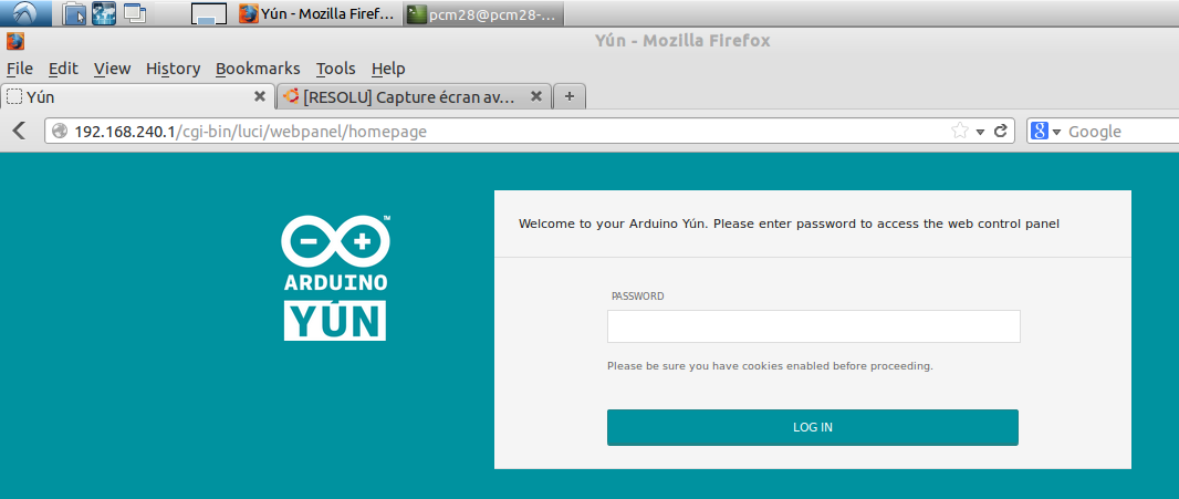 - Relier la carte arduino Yun à l'ordinateur à l'aide du câble de branchement.