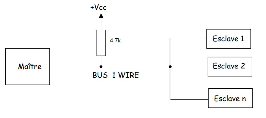 Ce système de bus utilise un seul maître, qui pourra dialoguer avec un ou plusieurs esclaves.