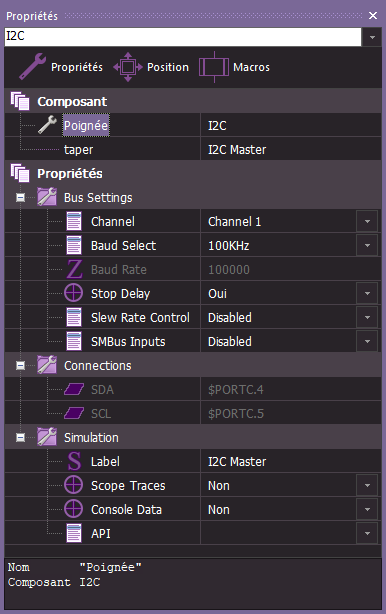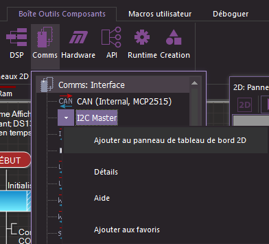 Dans Flowcode nous aurons besoin du Composant " I2C Master " catégorie " Comms " dans " Boite Outils Composants "