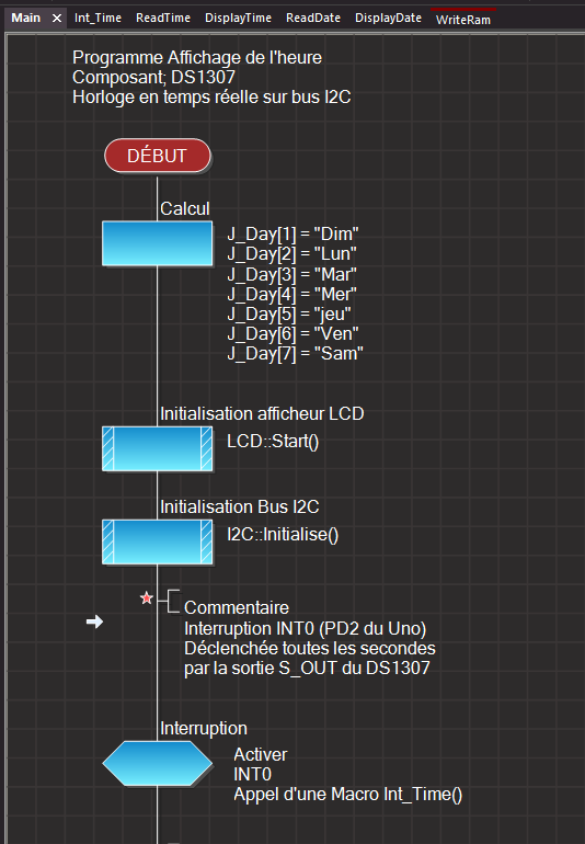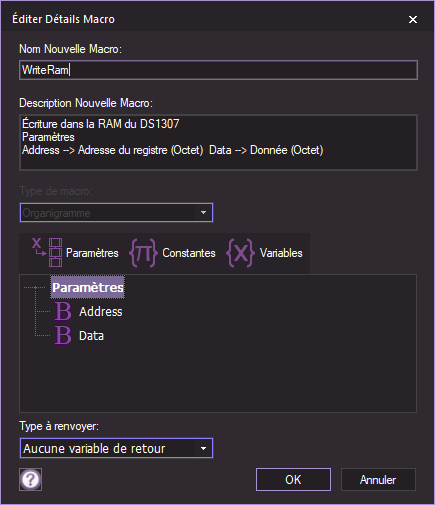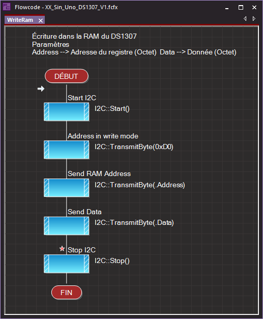 Élaboration d'une procédure (Macros Utilisateur) nommé WriteRam permettant d'écrire une donnée 8bits dans un registre de la RAM du DS1307.