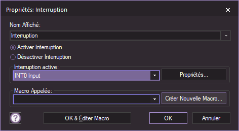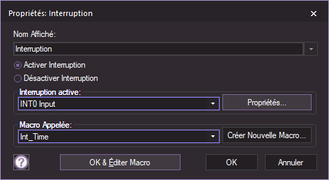 Avec, pour respecter le câblage, les Propriétés suivantes → |