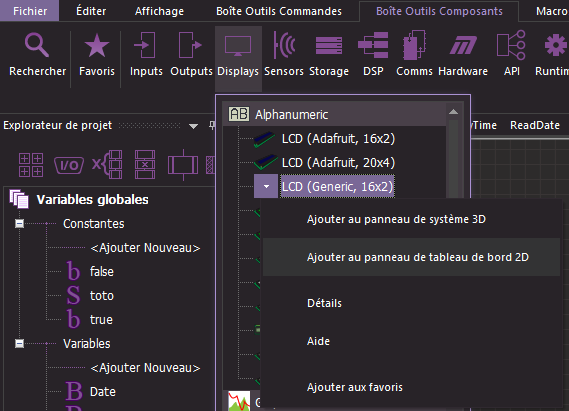 Ajouter dans le Panneau tableau de bord 2D un afficheur LCD