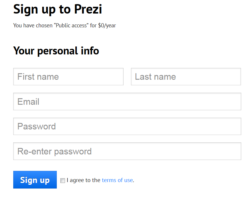 To create your Prezy presentation, you need to :