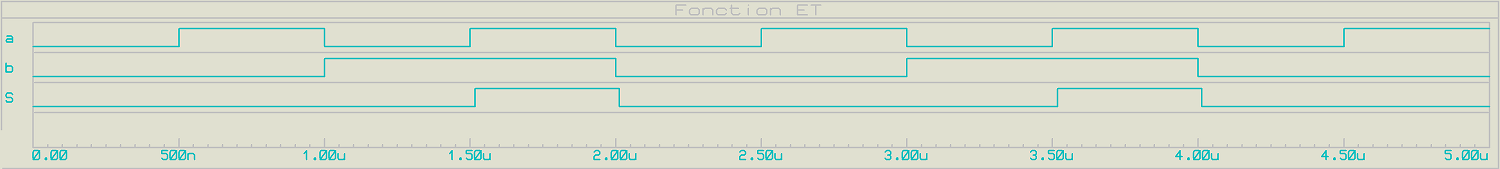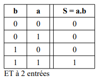 La sortie S est au niveau haut, si a = 1 ET b = 1, sinon S est au niveau bas