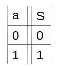 S reproduit la variable d’entrée a.
