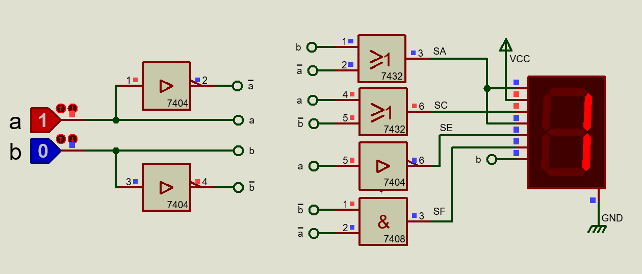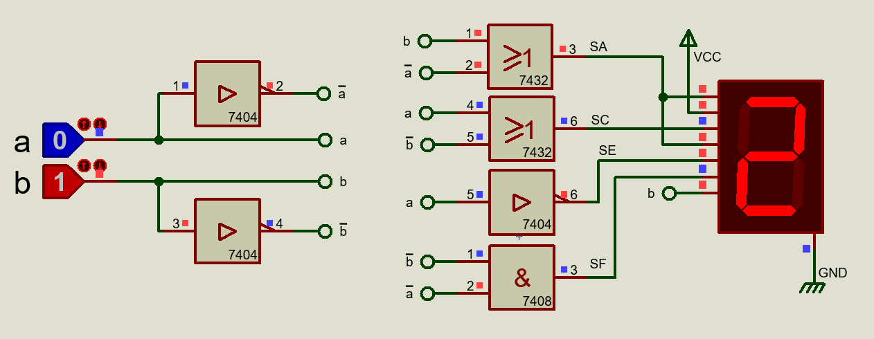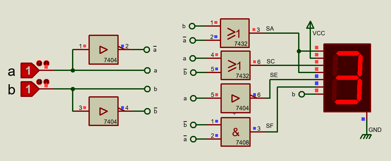 SA = b + a SB = 1 (Vcc) SC = b + a SD = SA SE = a SF = b . a SG = b