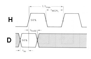 Le temps tSU est appelé temps de prépositionnement et tH se nomme temps de maintien. Attention ces temps peuvent avoir une valeur négative. |