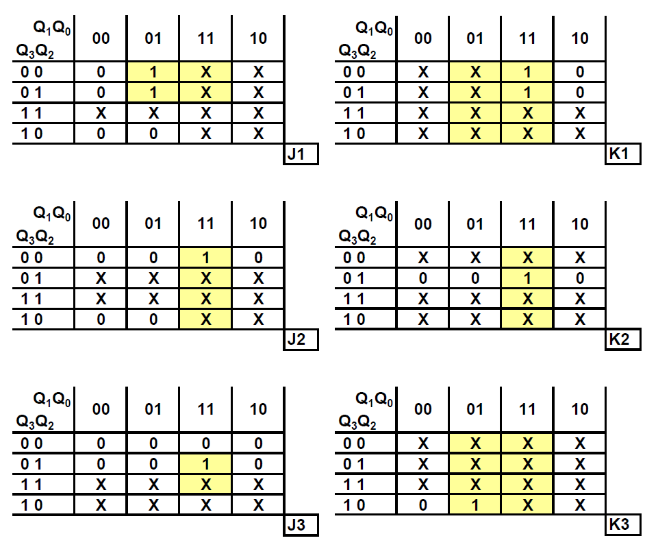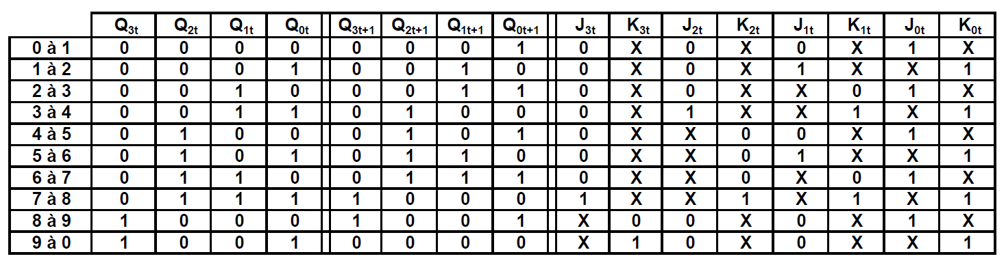 I - 2 - Recherche des équations des entrées J et K des bascules.