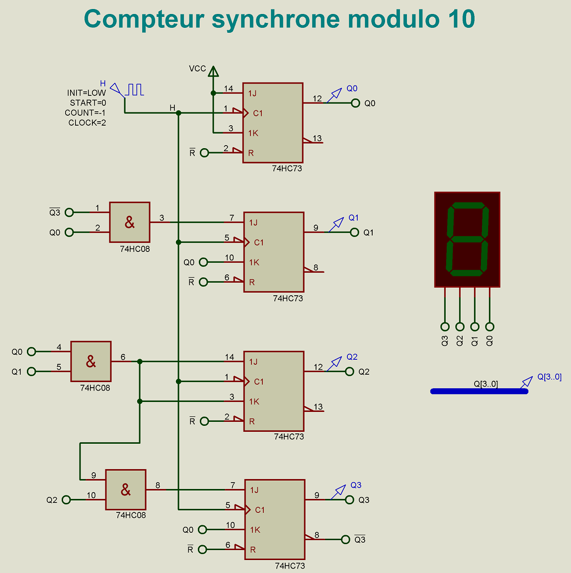 I -1- Il faut quatre bascules pour réaliser ce compteur, qui compte de 0 à 9.
