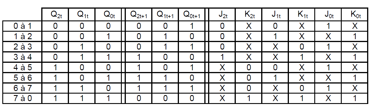 J0 = K0 = 1 J1 = K1 = Q0 J2 = K2 = Q0 . Q1