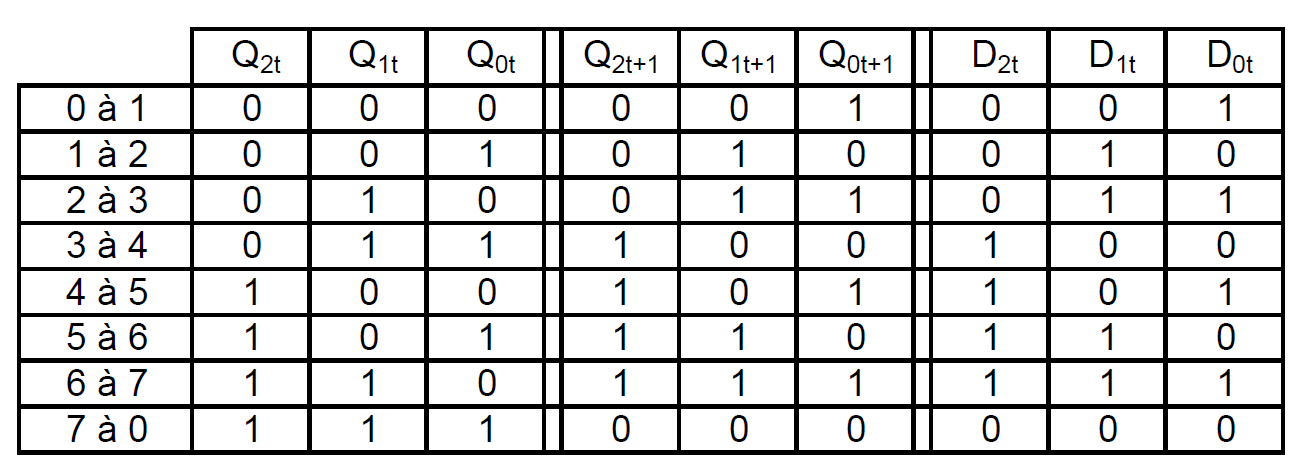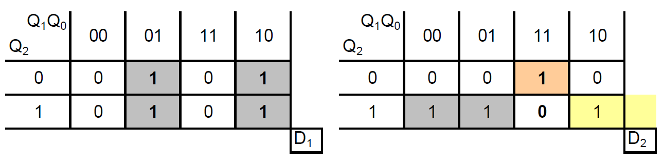 D2 = Q2.Q1 + Q2.Q0 + Q1.Q0.Q2 = Q2.(Q1 + Q0) + Q2.(Q1.Q0) = Q2 ⊕ (Q1.Q0)