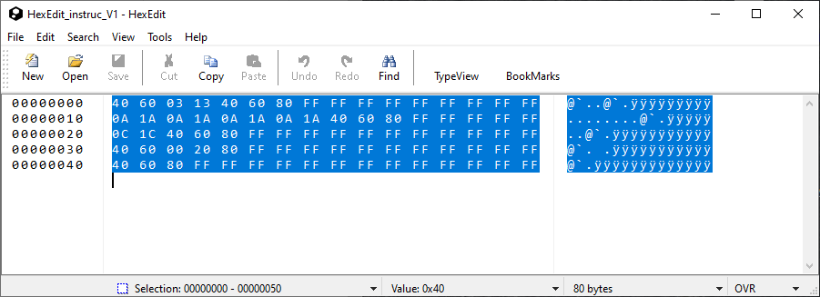 Création du fichier Instruc_V1.hex. (Type:Intel Hex Records)