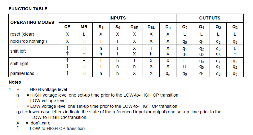 Pour notre processeur nous utiliserons des Registres à décalages 4bits de type 74LS194.
