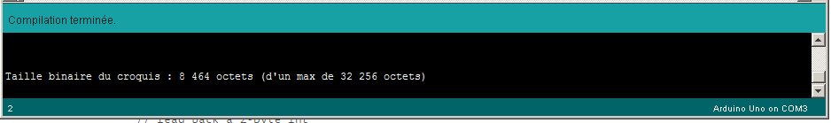 Lors de la compilation de votre code, l’IDE vous donne une indication sur la mémoire Flash utilisée par votre programme. Si vous dépassez la capacité de votre microcontrôleur vous en serez immédiatement informé. Pas de mauvaise surprise de ce côté-là…