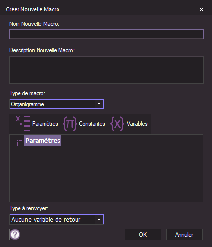 - Creating a New Macro - Création d'une nouvelle macro ou sous-routine d'organigramme