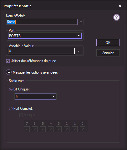 Aide: https://www.flowcode.co.uk/wiki/index.php?title=Output_Icon_Properties