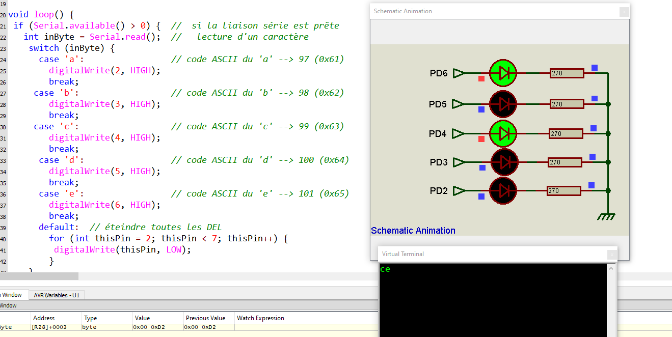 case 'e': // code ASCII du 'e' --> 101 (0x65)