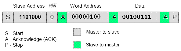 2. Le maître envoie l'adresse de l'esclave (1101000) suivi du bit 0 (bit Write).