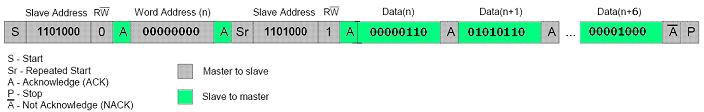 21. L'esclave envoie le contenu du registre d'adresse 0x06 (automatiquement incrémenté) au maître.