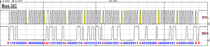 Le DS1307 travaille dans le mode standard (fréquence d'horloge de 100kHz).