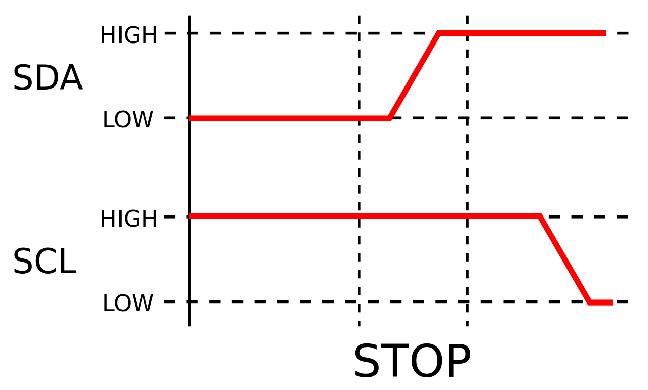 • La condition d’arrêt. ( STOP: SDA passe à '1' alors que SCL reste à '1' )