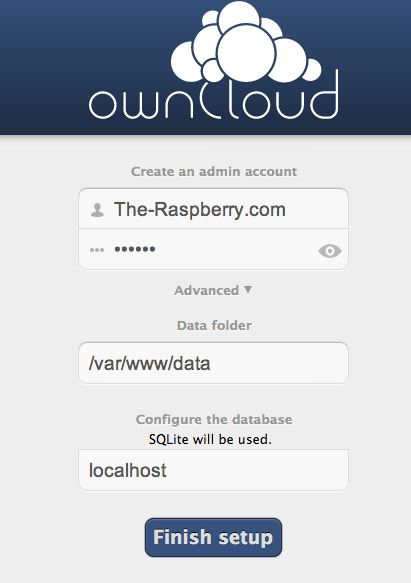 Quand vous arrivez sur la page, Owncloud vous demande de créer un compte. Saisissez donc un nom d’utilisateur et un mot de passe puis cliquer sur le bouton finish setup.